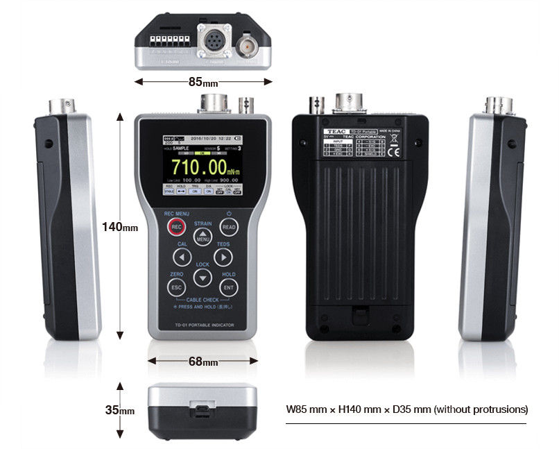 Top of the line handheld load cell indicator, data logging, peak hold, overload alarm, TEDS IEEE 1451.4 automatic calibration, store up to 6 load cell calibrations, and the ability to display the load cell’s readings as a waveform or bar graph. The TD-01 portable handheld indicator is designed for use in the lab and robust enough for field use. Connect the force transducer using the mating connector or the terminal block.